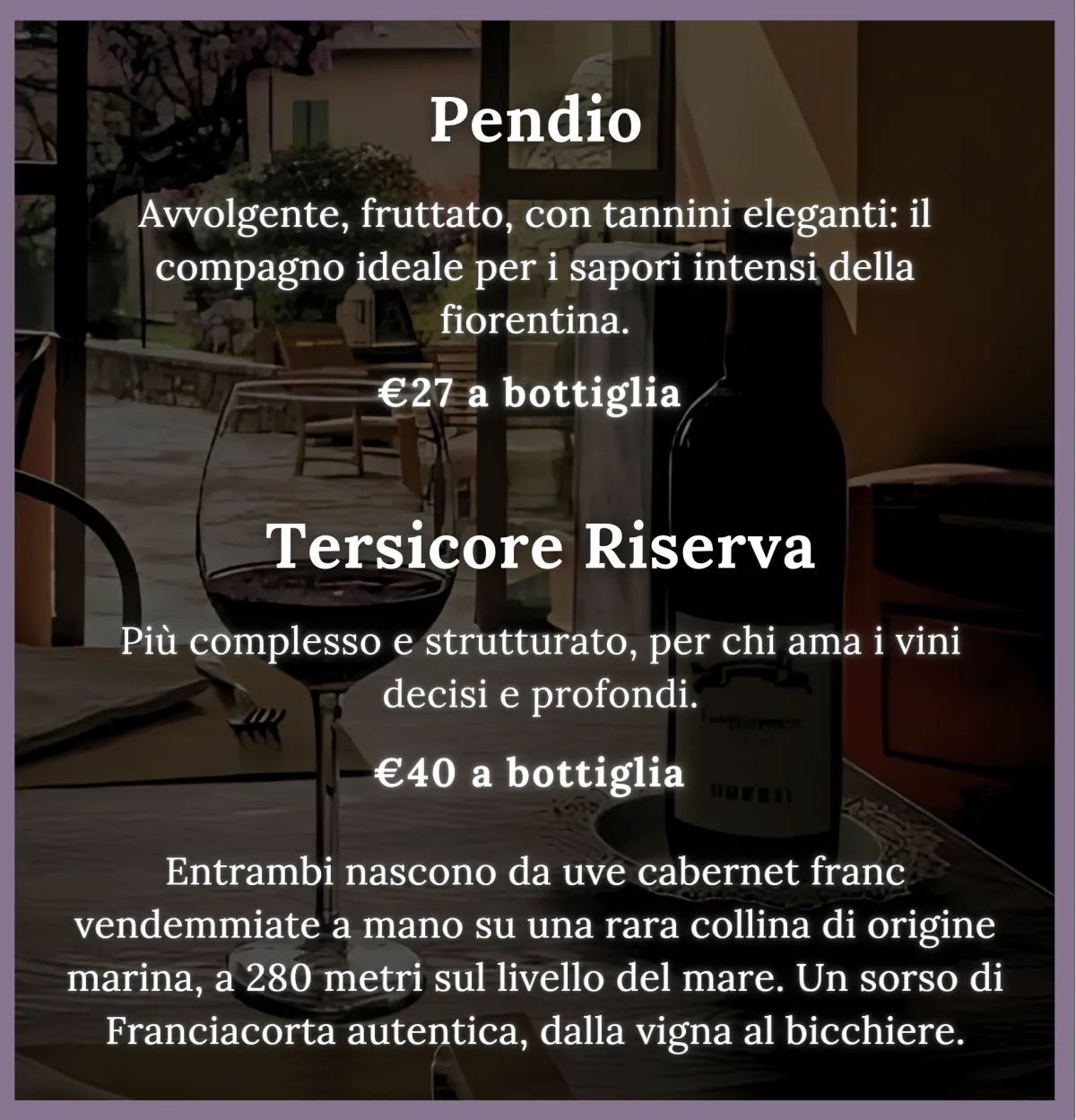 Per esaltare ogni portata, ti consigliamo due vini rossi biologici della Cantina Pianora, realizzati a pochi passi da noi: